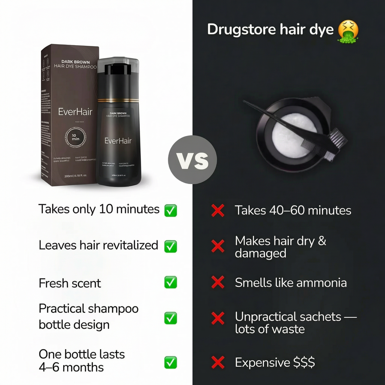 Forget messy box dyes: no mixing, no gloves, no stains. Works like regular shampoo—fully covers grays.